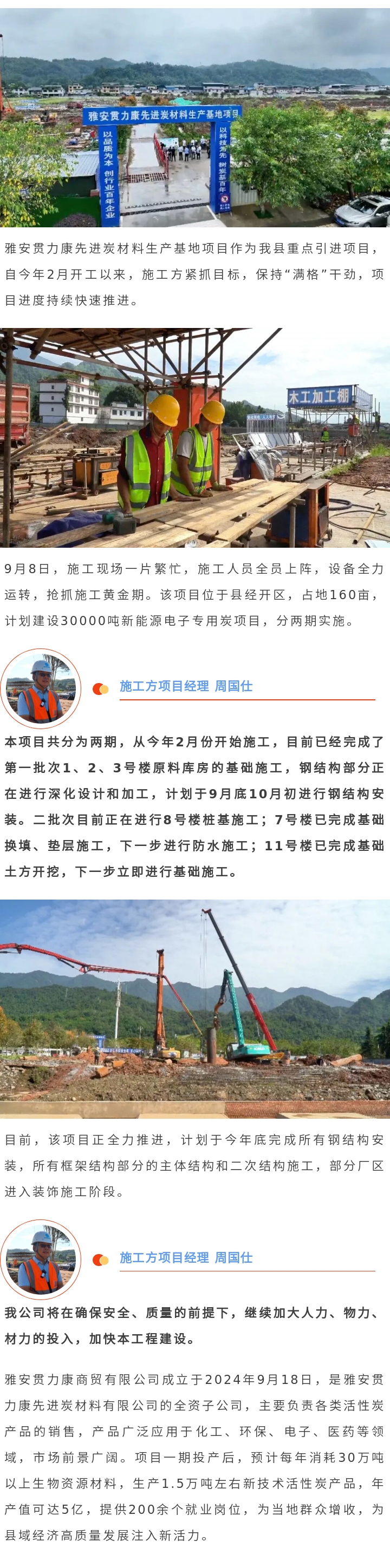 雅安贯力康先进炭材料项目进度持续快速推进